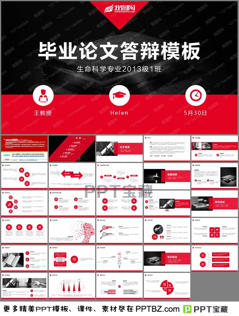 红黑风格毕业论文答辩模板ppt下载