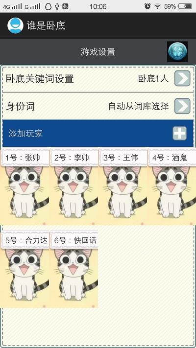 4、若卧底撑到最后一轮(场上剩3人时),则卧底获胜,反之,则平民胜利。